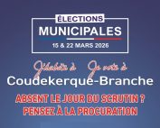Élections municipales – 15 et 22 mars 2026. Vous serez absent le jour du scrutin ? Pensez à établir une procuration. La démarche peut être effectuée : Au commissariat de Police de Dunkerque (60 quai des Hollandais) Au commissariat de Police de Dunkerque – secteur