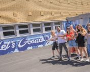 L’année passée, des jeunes de l’école des beaux-arts ont réalisé une superbe fresque sur la façade arrière de la tribune visible depuis l’entrée principale. Une nouvelle fresque sera réalisée cet été à la piste d’athlétisme.