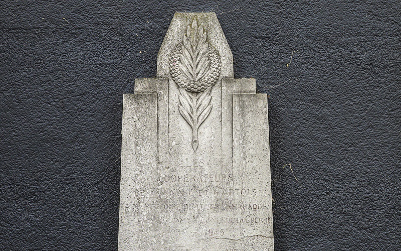 Cependant, un autre monument quelque peu oublié, qui ne fait pas partie du patrimoine communal, séjourne sur le domaine de Creanor, route de Bergues. Cette stèle, érigée par les Coopérateurs de Flandre, rend hommage à leurs anciens employés tombés durant la guerre.